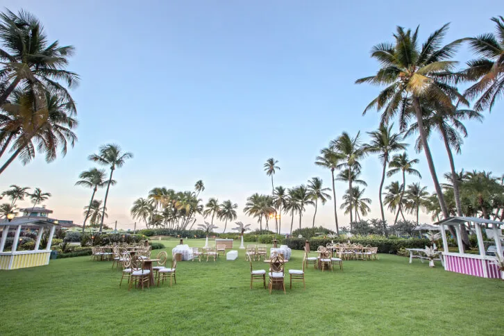 A hidden gem within Rio Mar, Marbella Garden is a storybook setting where lush palms sway, vibrant blooms flourish, and the beauty of nature wraps every moment. Tucked away for ultimate seclusion, this enchanting haven invites you to exchange vows or celebrate under a canopy of stars.