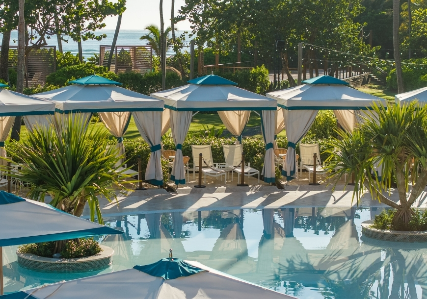 Relax in style with a private cabana. Set by the pool or beach, each offers plush seating, personalized service, and unbeatable ocean views—perfect for a day of tropical indulgence.