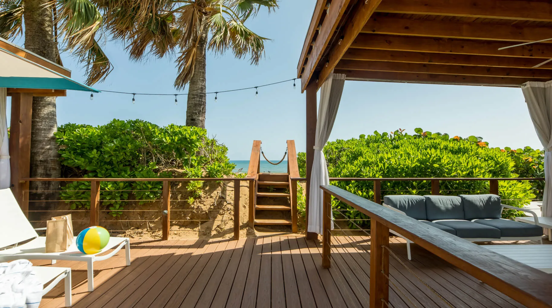 Our cabanas are perfectly situated between the inviting pool deck and the pristine beach, allowing you easy access to both stunning settings. Whether you're soaking up the sun by the pool or feeling the gentle ocean breeze on the beach, our cabana offers an idyllic retreat for relaxation and enjoyment.