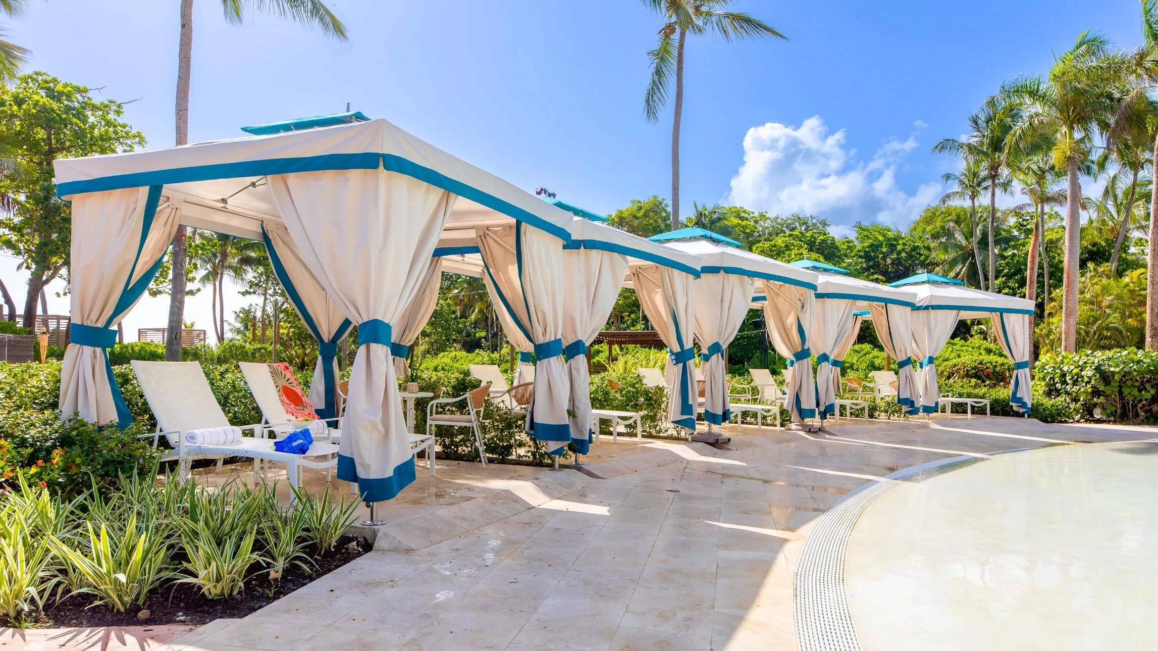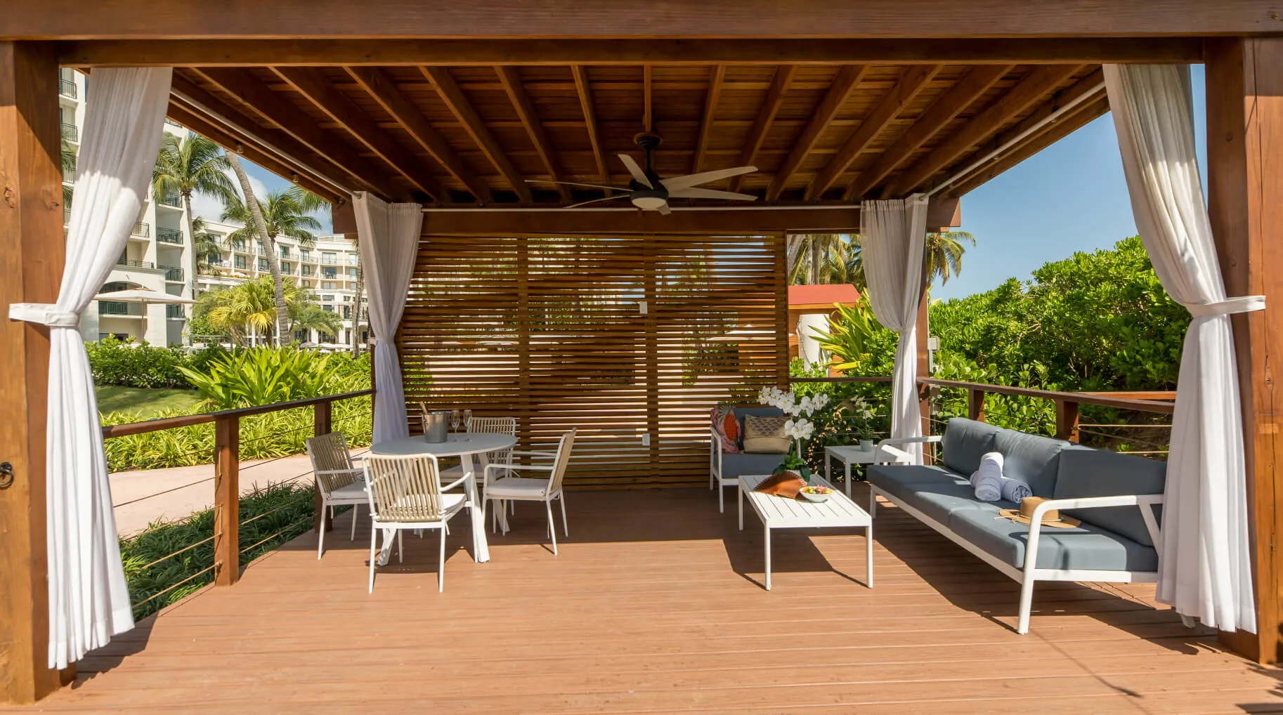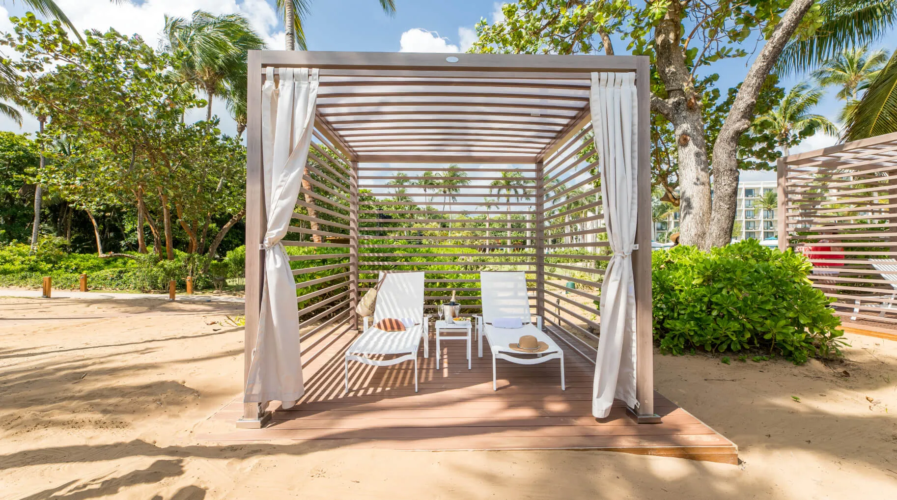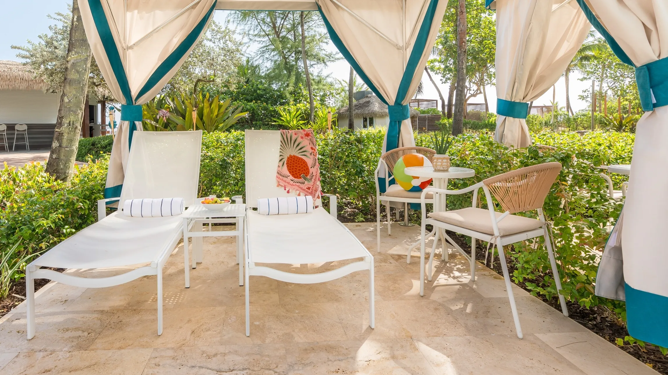 Relax in style with a private cabana. Set by the pool or beach, each offers plush seating, personalized service, and unbeatable ocean views—perfect for a day of tropical indulgence.Each cabana includes six bottles of water and a fresh fruit platter, available daily from 9 AM to 6 PM.