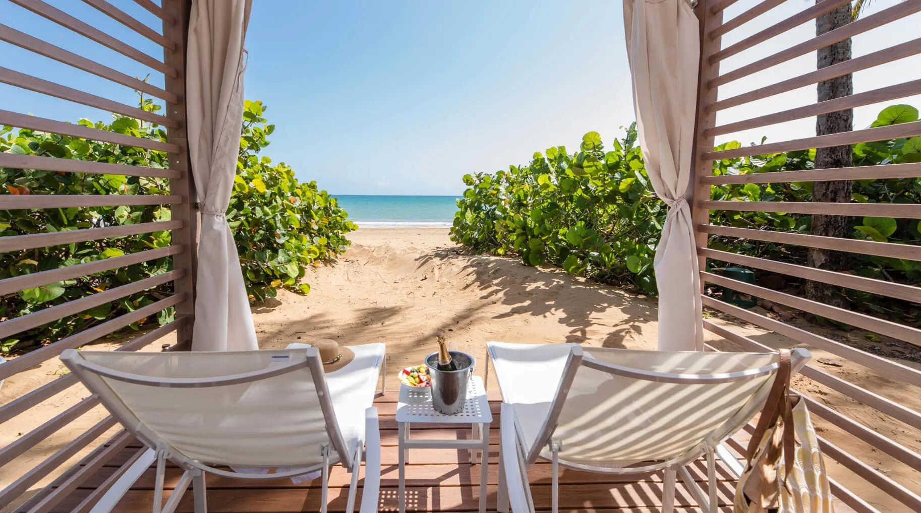 The Aura Adult Swim Lounge at Rio Mar Resort is an adults-only, tropical retreat offering six luxury cabanas near the water. Surrounded by lush greenery, it’s a serene spot for relaxation, with elevated service including juices, rosé, and cocktails—perfect for unwinding in style.
